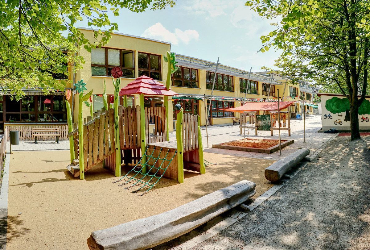 Der integrative Kindergarten befindet sich im Walterhäuser Plattenbaugebiet Ibenhain. Er verfügt über ein sehr großzügiges Außengelände in Hanglange. Große Teile des Gartens sind bereits in vorangegangenen Bauabschnitten neugestaltet worden.